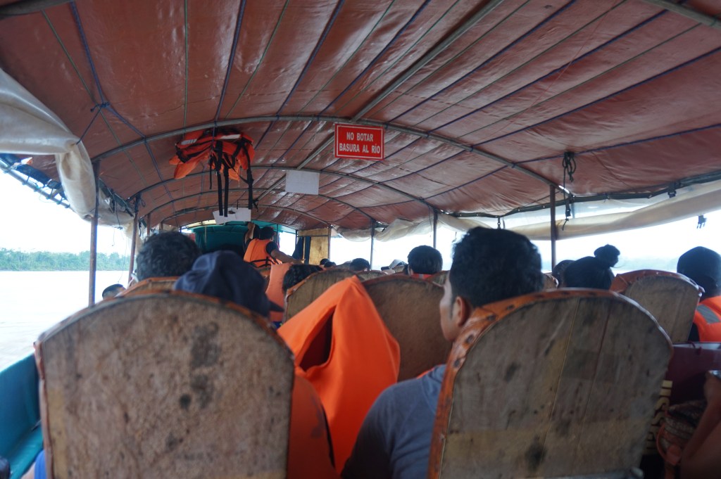The following morning I took the slower of the two available canoes, leaving at 7am for its 220km and 10 hour journey to Nuevo Rocafuerte, 20 k’s short of the Peruvian border. The canoe had 50 odd seats lining either side of the boat, facing inwards with a walkway down the middle. This style is way more spacious and more comfortable than the boats that have the seats in rows and much less legroom. I happened to be sat next to the only fat guy on the boat which meant I had a little less room than others but it wasn’t too bad. I was also sat next to a group of Italians who were friends travelling from home.