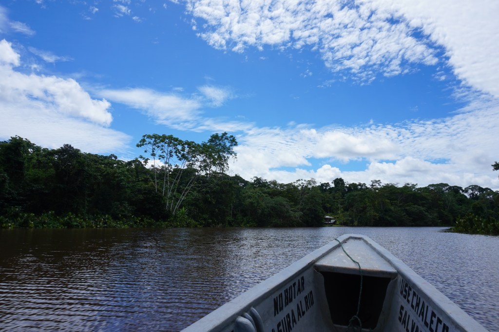 After talking with the Italians for the 10 hour journey, we came to realise that we would be making more or less the same journey over the next week. This made it a lot easier to find transport across the border once we had arrived in Nuevo Rocafuerte. Generally, the only way to cross the border is in a private ‘peke peke’ which they call a small motorised canoe around here. You might get lucky and find an ambulance or cargo boat crossing at the right time but otherwise, the options are limited. We also found a German at the other end of the boat who was crossing the border too so with the journey split 5 ways, it would be much cheaper.