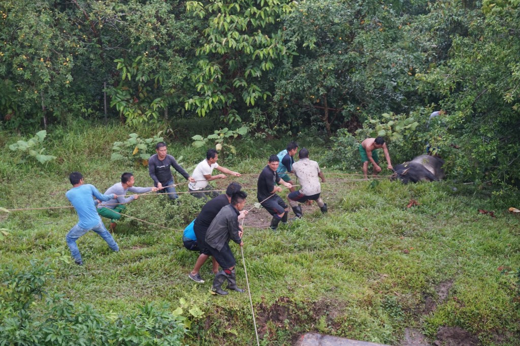 All of the livestock was being re-weighed and sold per kg to the butchers who had also arrived in numbers and were battling for the best produce. Every part of the boat had some sort of frantic action going on and within 2-3 hours, the boat had been emptied of the produce we had spent the last 5 days collecting. And with the produce all gone, the area in front of the boat had become calm and completely empty apart from a few people guarding their piles of produce awaiting transport. As I said, time is money here and the sooner the stock leaves the boat and hits the markets, the more chance they have of selling it. The locals await the arrival of these boats so the chain of the boat to the market to the house (and probably to the stomach) happens within hours.